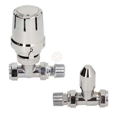 Keyplumb All Chrome Straight Thermostatic Radiator Valve And Lockshield Set